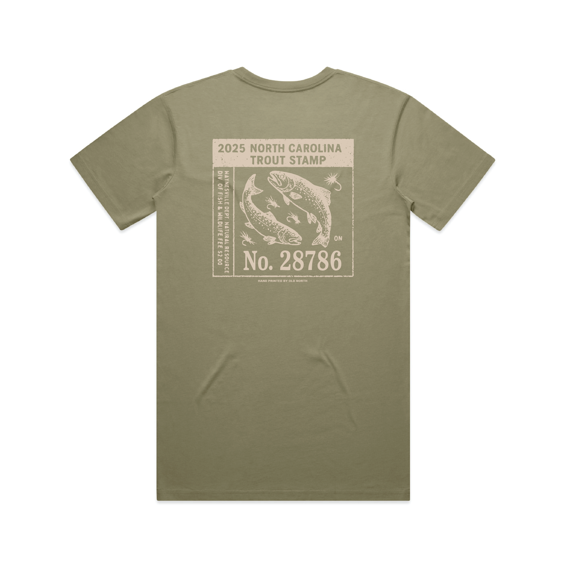 At one time, anglers were required to carry a Trout Stamp to fish these North Carolina waters. This design is inspired by those vintage stamps, featuring the number 28786 — a nod to one of the many great mountain zip codes where trout fishing runs deep.